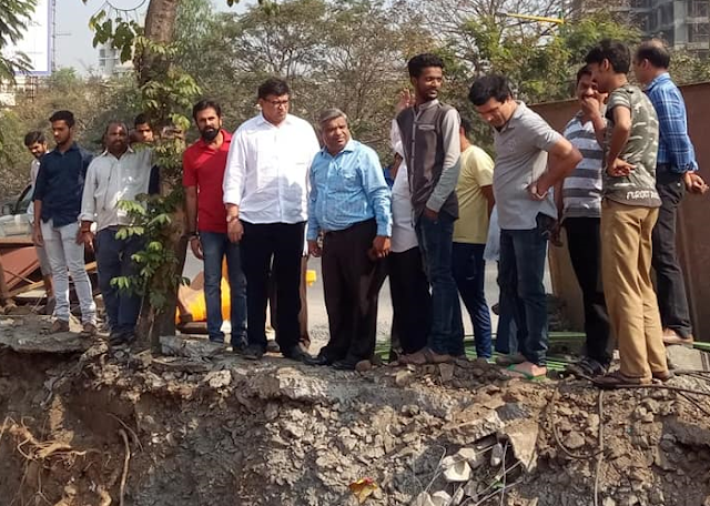 MMRDA च्या कोपरी हायवे रस्त्याचे काम सुरू असून हा हायवे खोलवर खणण्यात आल्याने त्याखाली काही अंतरावर असलेला हा नालाही रुंद करून घ्यावा या मागणीसाठी ठा. म.पा नाले दुरुस्ती इंजिनिअर कोल्हे सह सदर ठिकाणी पहाणी दौरा करण्यात आला. ठा.म.पा.ने यासाठी MMRDA कडे मागणीही केली आहे .असे झाल्यास येथील समस्या कायमस्वरूपी दूर होईल. या पाहणी दौऱ्यात भाजपा शहर उपाध्यक्ष डॉ.राजेश मढवी तसेच स्थनिक रहिवाशी मोठ्या संख्येने उपस्थित होते.