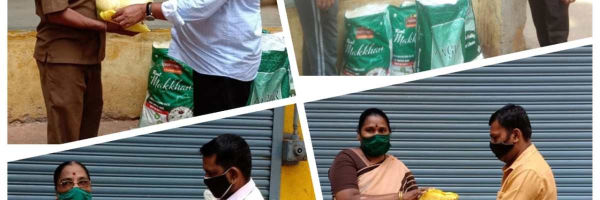 कोरोनाच्या पाश्वभूमीवर डॉक्टर ,पोलिस यांच्या जोडीलाच महापालिकेचे सफाई कामगार, कंत्राटी कामगार,घंटागाडी कामगार हेही जीवावर उदार होऊन काम करीत आहेत.सफाई करीत असलेला भाग कटेन्मेंट झोन असो किंवा नसो त्यांचे अविरत काम चालू आहे . परंतु लॉकडाऊनमध्ये त्यांच्या कुटुंबियांची फार ओढाताण होत आहे.ही बाब लक्षात घेऊन ठाणे गौरव सेवा प्रतिष्ठान व नगरसेविका सौ.प्रतिभा मढवी यांचे वतीने या गरीब गरजू कर्मचाऱ्यांना धान्य व जीवनावश्यक वस्तूचे वाटप पंपिंग स्टेशन येथील पेटीवर करण्यात आले.यावेळी महापालिका सफाई प्रमुख अहीरे,संतोष शेतकर व संस्थेचे कार्यस्वक व डॉ .राजेश मढवी भाजपा ठाणे शहर उपाध्यक्ष उपस्थित होते .