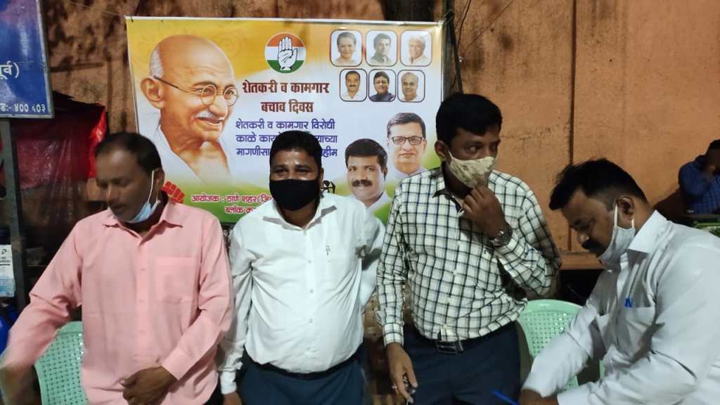 बीजेपी सरकारने जे शेतकरी विरोधी विधेयक मंजूर केले आहे त्या विधेयकाला काँग्रेस पार्टीने शेतकऱ्यांच्या हितासाठी त्या विधेयकाला विरोध केला असून भारतीय शेतकऱ्यांच्या समर्थनात आणि शेतकऱ्यांच्या बाजूने लढ़ा देण्यासाठी महाराष्ट्र प्रदेश काँग्रेस कमिटीचे अध्यक्ष मा.श्री बाळासाहेब थोरात यांच्या आदेशाने व ठाणे शहर (जि) कमिटी चे अध्यक्ष मा.श्री.विक्रांत चव्हाण साहेब यांच्या मार्गदर्शना नुसार कोपरी-हजुरी ब्लॉक काँग्रेस कमिटीच्या ब्लॉक क्रमांक ५ वतीने दि.२७/१०/२०२० रोजी सायंकाळी ४.०० ते ७.०० या वेळेत स्व. नारायण कोळी चौक, चेंदनी कोळीवाडा, कोपरी ठाणे पूर्व येथे स्वाक्षरी अभियान कार्यक्रम श्री. स्वप्निल कोळी यांच्या पुढाकाराने घेण्यात आला. सदर ठिकाणी उत्स्फूर्त प्रतिसाद मिळाला. तसेच शहर कमिटी, ब्लॉक कमिटी तसेच युवक कांग्रेस चे सर्व पदाधिकारी यांची उपस्थिति लाभली.