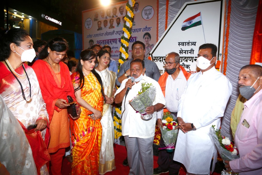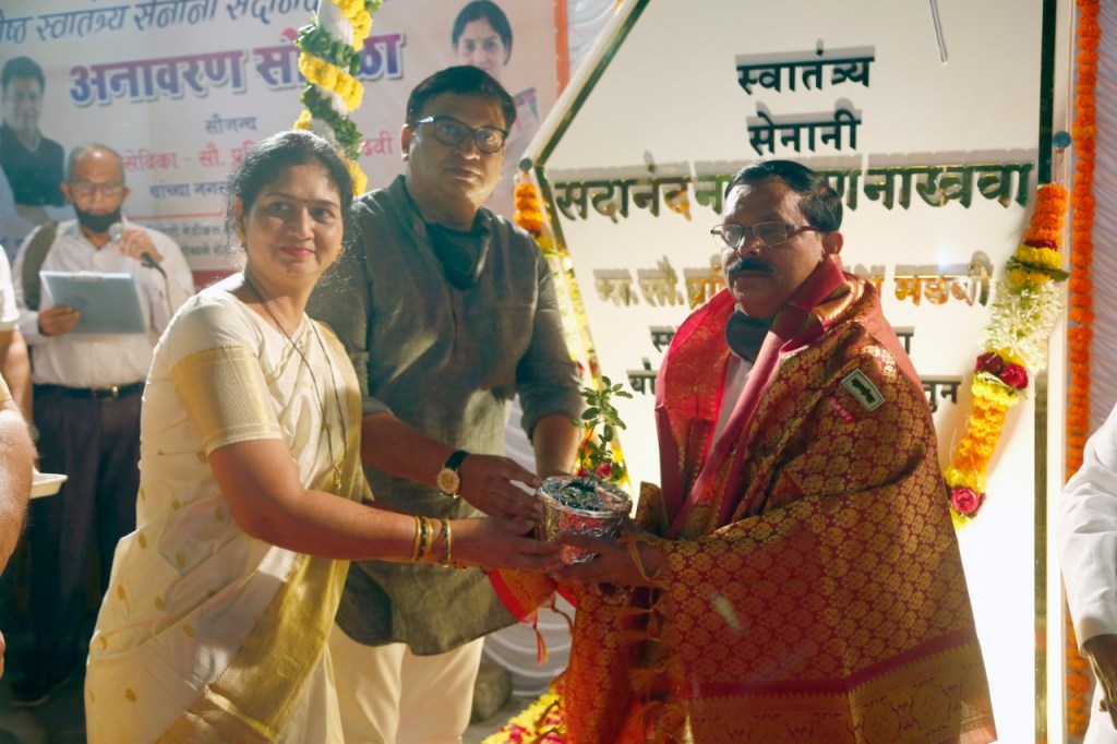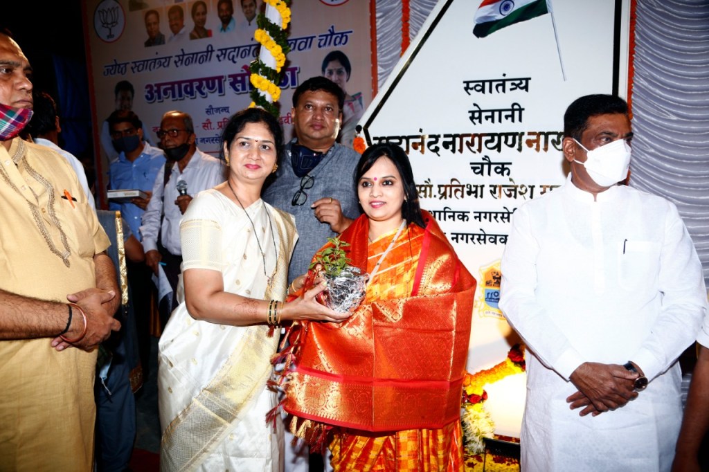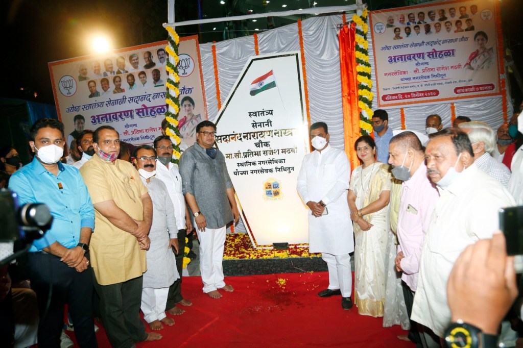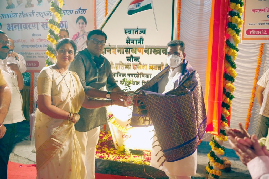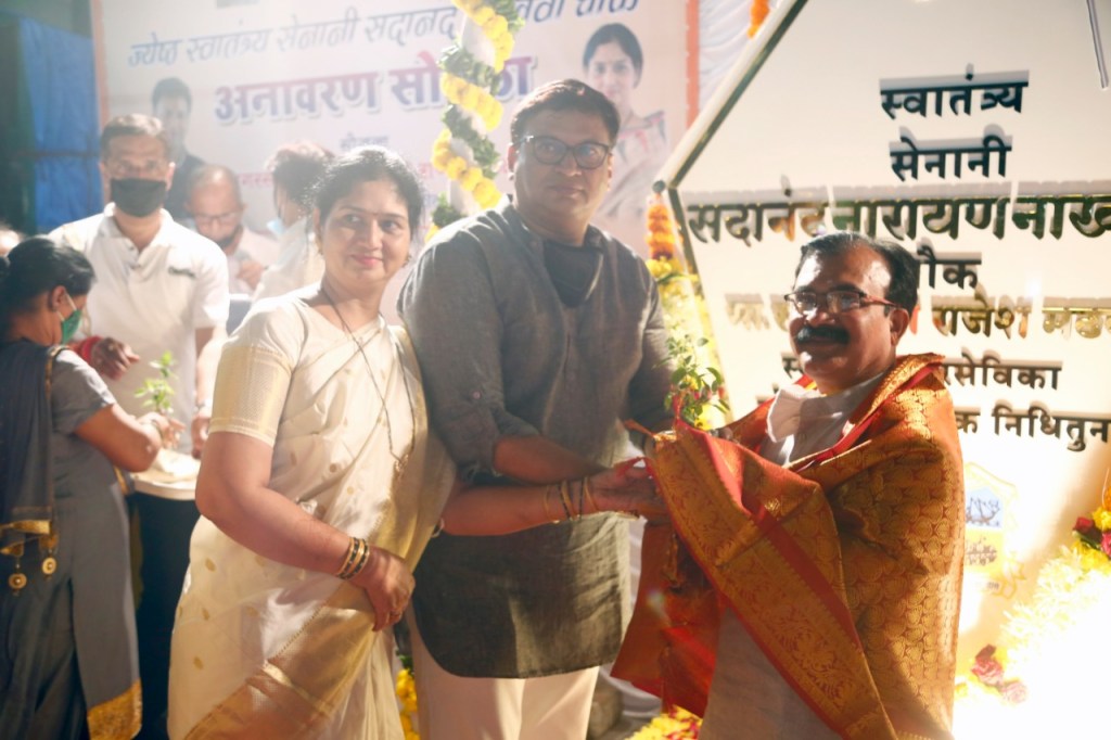 नगरसेविका सौ.प्रतिभा राजेश मढवी यांच्या नगरसेवक निधीतून ठाण्यातील गोखले रोड येथे जेष्ठ स्वातंत्र्य सेनानी सदानंद नाखवा चौकाचे दिमाखदार अनावरण सोहळा खासदार कपिलजी पाटील यांचे शुभहस्ते साजरा झाला