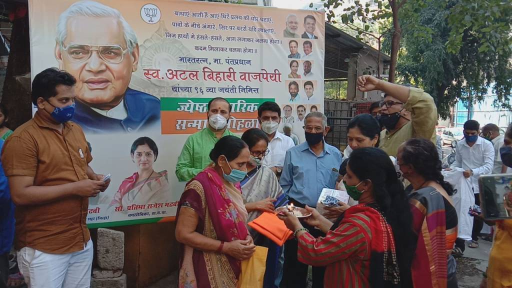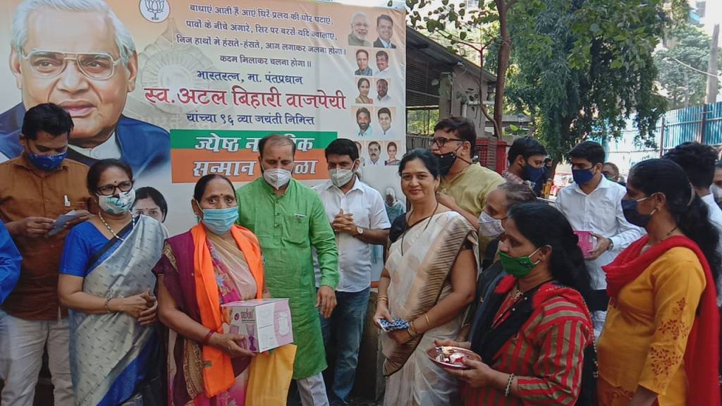उत्कृष्ट संसदपटू निष्णात राजकारणी, कवी ,साहित्यिक, पत्रकार व खऱ्या अर्थाने बहुआयामी व्यक्तिमत्व असलेल्या भारतरत्न मा. पंतप्रधान स्व. अटलजी बिहारी यांच्या जयंतीचे औचित्य साधून ठाणे शहर भाजपाच्या वतीने नगरसेविका प्रतिभा मढवी यांच्या सौजन्याने तसेच जेष्ठ आमदार संजयजी केळकर व अध्यक्ष आमदार निरंजनजी डावखरे यांच्या नेतृत्वाखाली एक आगळा वेगळा उपक्रम साजरा करण्यात आला.