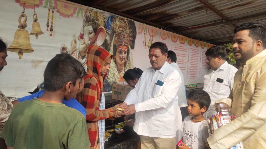 ठाणे शहर जिल्हा काँग्रेस कमिटी अध्यक्ष श्री. विक्रांत चव्हाण साहेब यांच्या वाढदिवसानिमित्त ब्लॉक क्रमांक ५ तर्फे हरिओम नगर येथील लहान मुलांना फळे व खाऊ (पोहे, बिस्किट, केळी, केक) वाटप करून वाढदिवस साजरा करण्यात आला. यावेळी कार्यक्रमास महाराष्ट्र प्रदेश सदस्य भालचंद्र महाडिक, प्रमुख प्रवक्ते सचिन शिंदे, सरचिटणीस शिरीष घरत, सरचिटणीस व ठाणे शहर सांस्कृतिक अध्यक्ष स्वप्निल कोळी, चिटणीस सौ मनीष कदम, प्रभाग अध्यक्ष प्रवीण खैरलिया, ओ बी सी सेलचे शिवाजी पिंगळे आणि विभागातील कार्यकर्ते उपस्थित होते.
