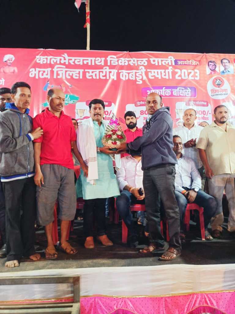 कालभैरव डिकसल पाली आयोजित जिल्हा स्तरीय कबड्डी स्पर्धेला उपजिल्हाप्रमुख नितीनदादा सावंत यांनी भेट दिली सोबत सह संपर्क प्रमुख अविनाश भासे विभागप्रमुख दिनेश भासे शाखाप्रमुख समीर साळोखे विकास भासे, योगेश साळोखे, सचिन गायकवाड, सचिन शेळके,संतोष शेळके,राकेश जाधव ,बाळकृष्ण शेळके उपस्थित होते.