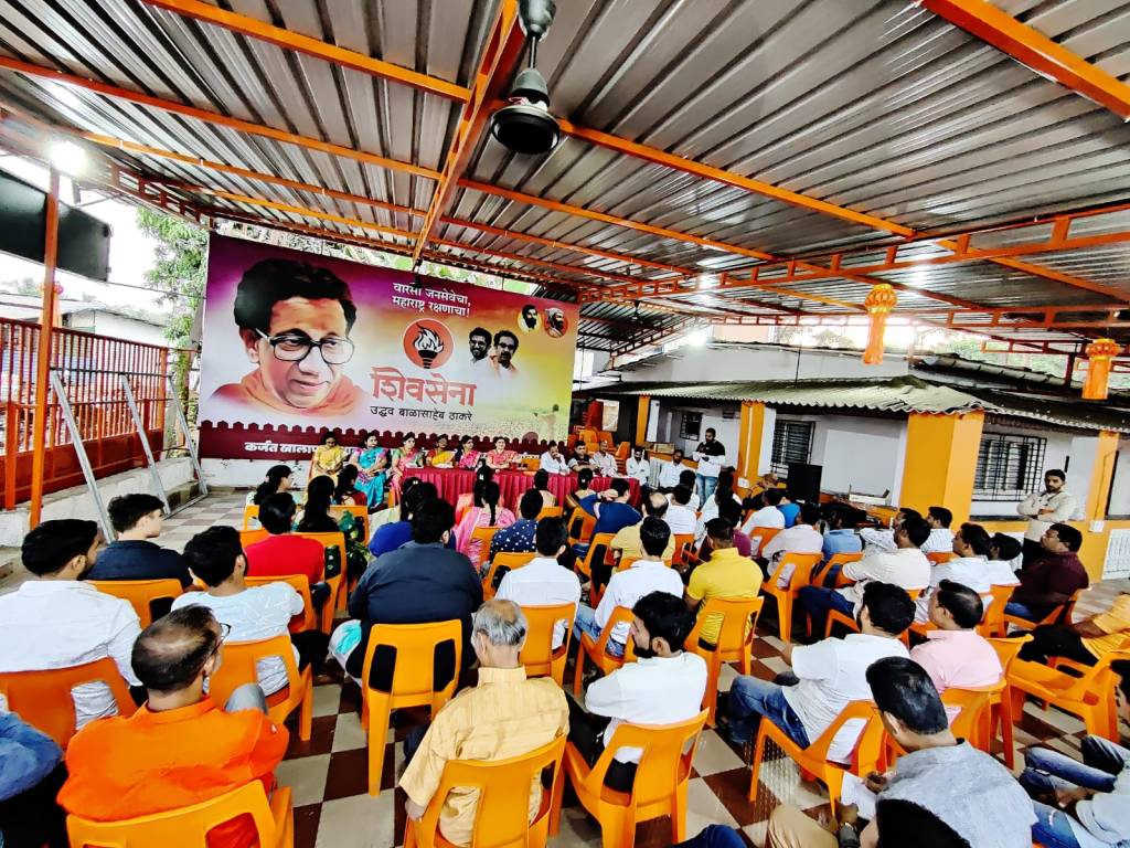 शिवसेना उध्दव बाळासाहेब ठाकरे पक्षाची आज कर्जत शहराची बैठक शिवालय येथे संपन्न झाली. या बैठकीत शहरातील विविध भागातील पदाधिकाऱ्यांच्या नियुक्त्या करण्यात आल्या. यामध्ये शिवसेना, युवासेना तसेच महिला आघाडीच्या पदाधिकाऱ्यांचा समावेश होता. सोबतच हिंदुहृदयसम्राट शिवसेना प्रमुख श्रीमान बाळासाहेब ठाकरे यांच्या जयंती निमित्त कार्यक्रमाचे नियोजन करण्यासाठी आजच्या बैठकेचे आयोजन शहराच्या वतीने केले होते. सदर बैठकीस जिल्हा संघटक सुवर्णाताई जोशी, तालुका प्रमुख उत्तम शेठ कोळंबे, कर्जत तालुका महिला संघटक करुणाताई बडेकर, कर्जत शहर प्रमुख निलेश घरत, माजी कर्जत शहर प्रमुख, भालचंद्र नारायण जोशी, कर्जत शहर संपर्क प्रमुख संजय मोहिते, माजी नगरसेवक संतोष पाटिल, कर्जत शहर महिला संघटक मयुरी गजमल, कर्जत शहर समन्वयक अरुणा मोरे, कर्जत शहर महिला संघटक सारिका शेटे, कर्जत शहर महिला संपर्क प्रमुख मोहिनी मोहिते, नगरसेविका कर्जत नगरपरिषद संचीता पाटील, कर्जत शहर संघटक मुकेश पाटील, कर्जत उपशहर प्रमुख प्रसाद डेरवणकर, विनोद पांडे, प्रमोद खराडे, कर्जत शहर समन्वयक सुदेश देबघरे, उपशहर संघटक राजेंद्र मोडक, अभिजित बेडेकर, दिलीप अंबावणे आदि पदाधिकारी उपस्थित होते.